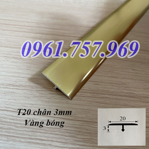 + Với độ rộng 20mm: Nẹp sàn nhựa chữ T sẽ che kín hết phần khe hở nối tiếp giữa hai bề mặt sàn